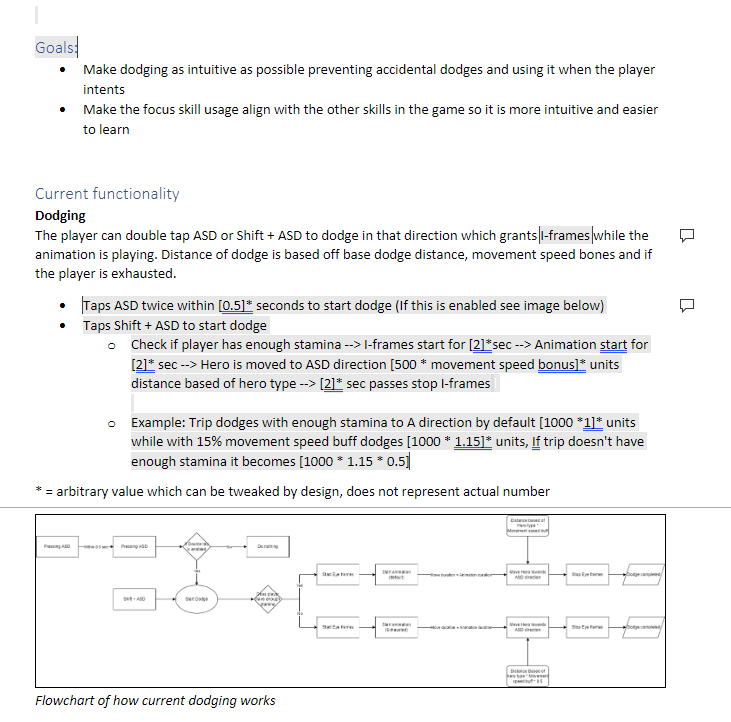 In collaboration with my design lead, I worked on reworking the existing dodge mechanic to make it feel better in play. I did this by researching and testing the current state of the mechanic. As well as researching a similar mechanic in other games in addition to looking on forums as to what the main issue is according to players. The main issue was that players would accidentally make use of the dodge while moving which costs stamina which is a resource that only replenishes out of combat.