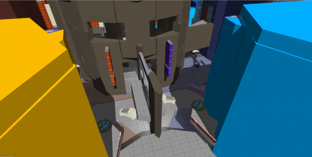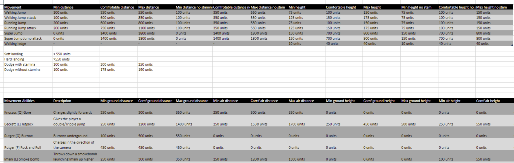 These values were most of the time split up into 3 values from min to comfortable to max, which would help us further develop the maps to make them feel good. Later during the process, this place got more tools in there like shooting ranges for abilities and AOE blast ranges as well as several new ideas that could be implemented into the maps.
