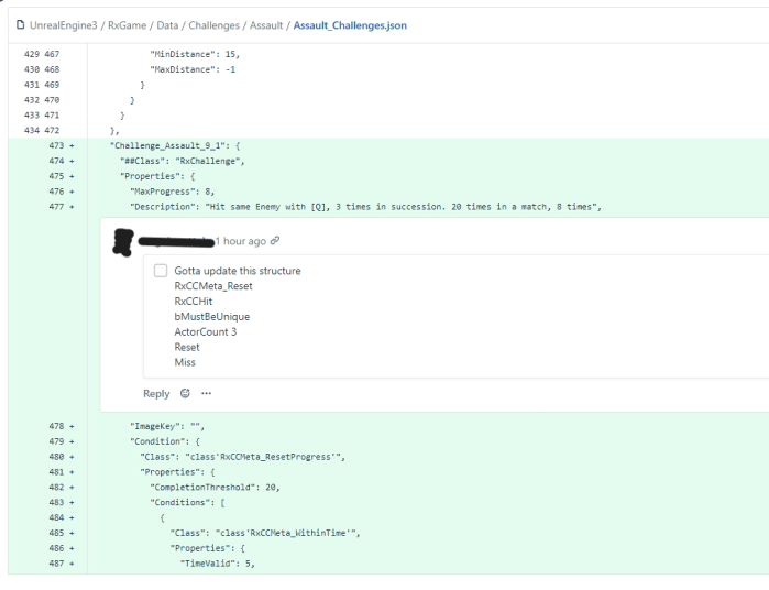 (On the side you see how the challenges were implemented and tested while below you see how they got code reviewed by programming)