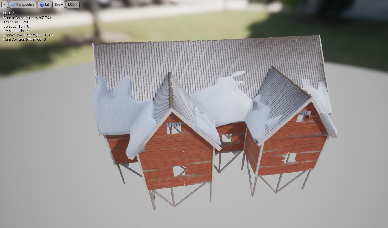 While I was doing this I thought of taking it even a step further by making use of HLODs. HLODs combine multiple meshes into proxy meshes for longer distance loading reducing the overall draw calls from 10 objects into 1. By applying this to a lot of clustered objects it saved a lot of performance in the end.