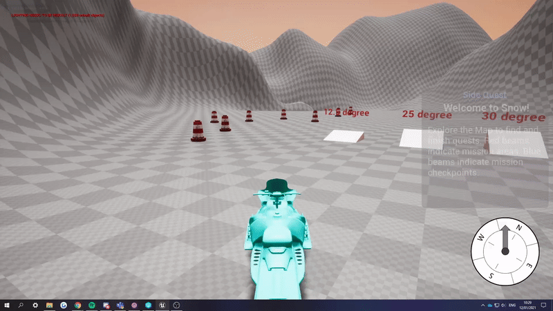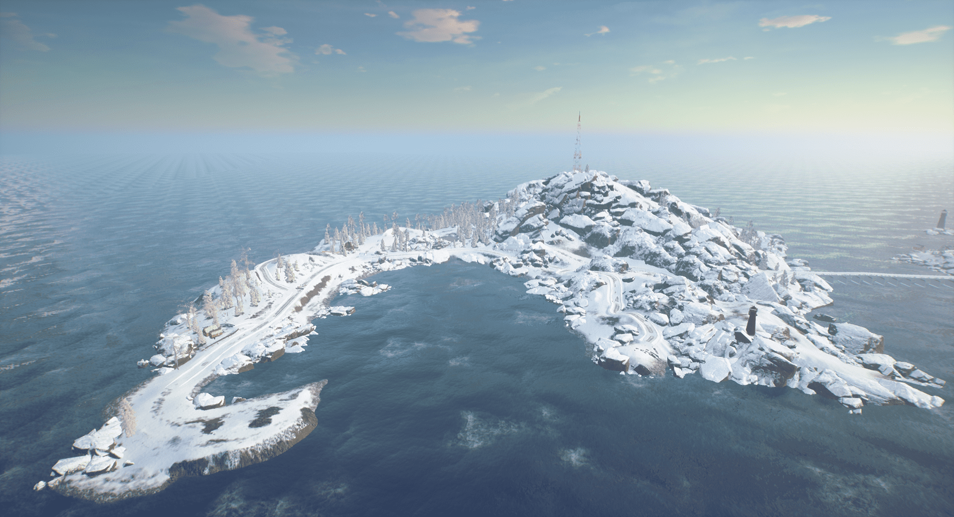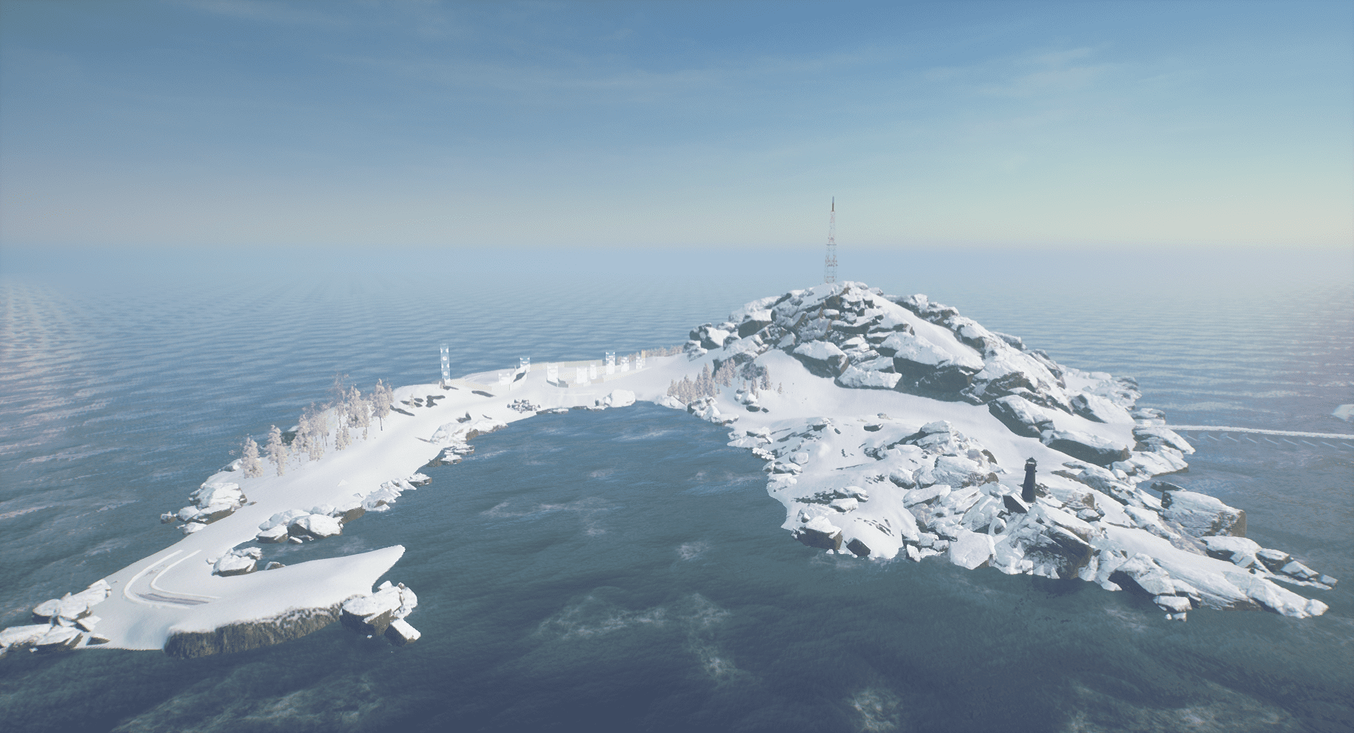 The idea to tie it into the narrative was to start the player off in a remote location and have to find their way towards the main island. To do this I created a mission that starts once the game is instigated, the goal of this mission is clear to reach the mainland. The markers that are placed in between are used to teach the player several controls.