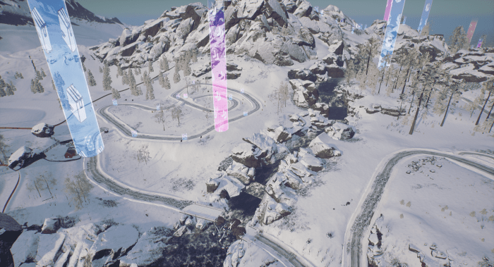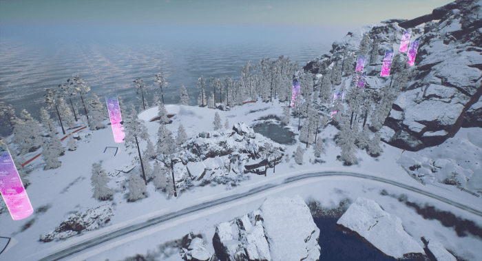 During production, we had a team of 4 level designers and divided the map up into different sections. This meant that I was responsible for a small racing area and the onboarding. In the early stages due to down scoping of the level size, the onboarding was abrupt and quickly implemented. This did a bad job of teaching the player what they can do and how everything works.